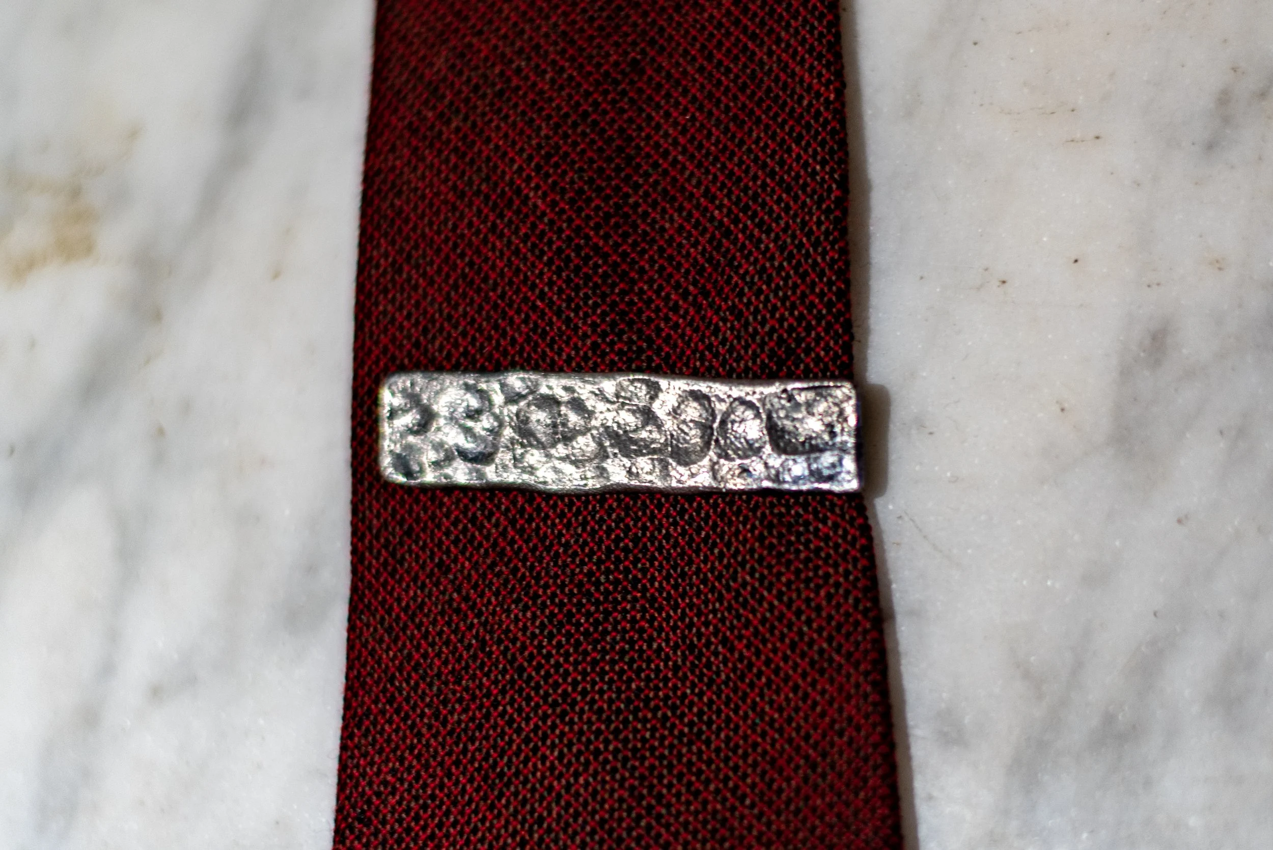 It was prom season. My date had a tie. No tie clip. No money. Enter stage left: the blacksmithing prom date. The decorative front was made with a ball-peen hammer to give it a kind of topographic texture. That was easy. Welding on an alligator clip from the drug store wasn’t. After the third try, I did get the job done. And he danced with it on.